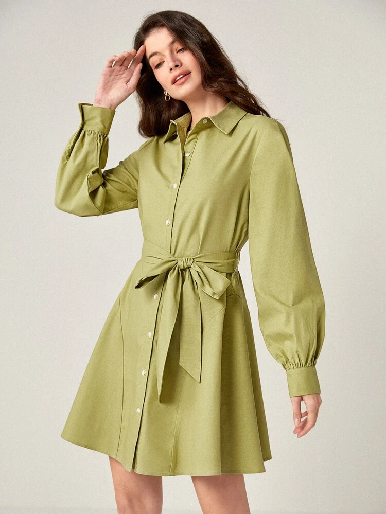 BizChic Solid Belted Shirt Dress