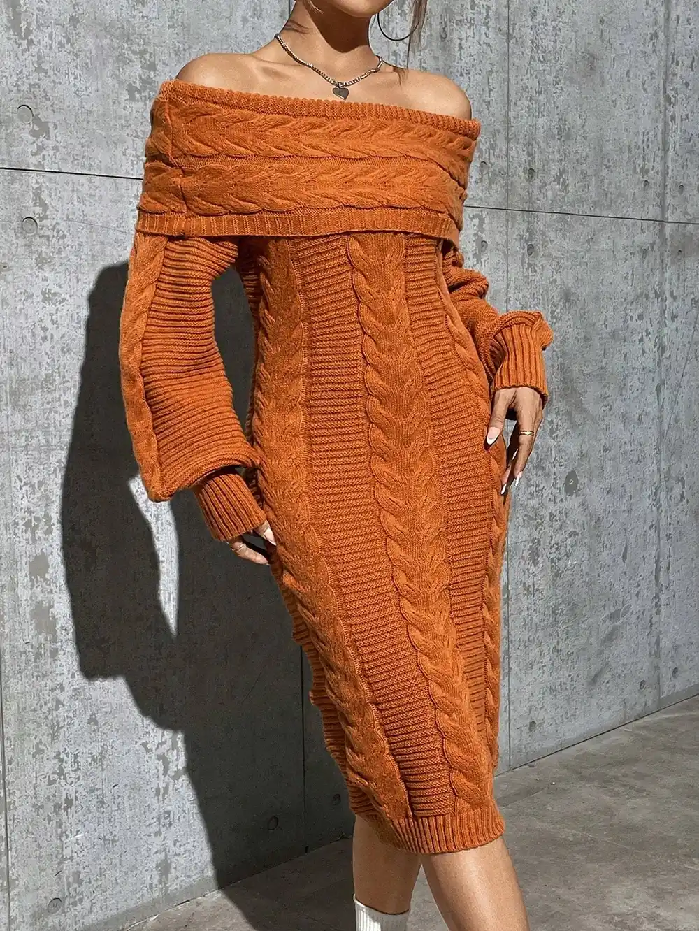 SHEIN EZwear Women’S Casual Cable Knitted Sweater Dress