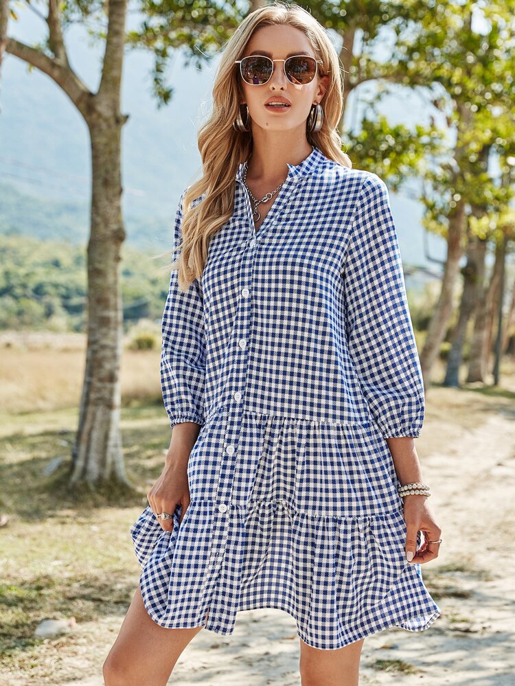 SHEIN VCAY Allover Floral Shirred Bodice Knotted Cami Dress